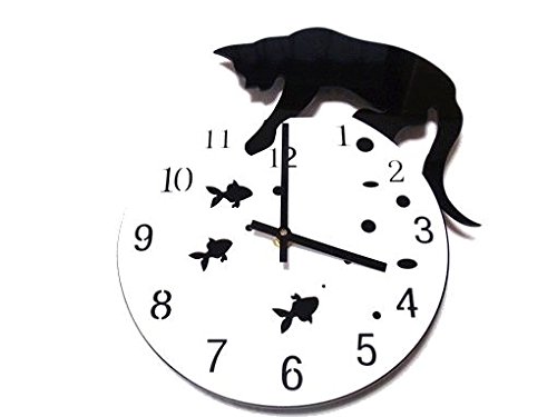 -. Title : おしゃれ ! 【 黒猫 金魚 掛け時計 + フック セット 】 アンティーク インテリア 壁掛け時計 北欧 時計 かわいい ネコ ねこ 雑貨 猫グッズ 壁掛け デザイン (猫 水槽)