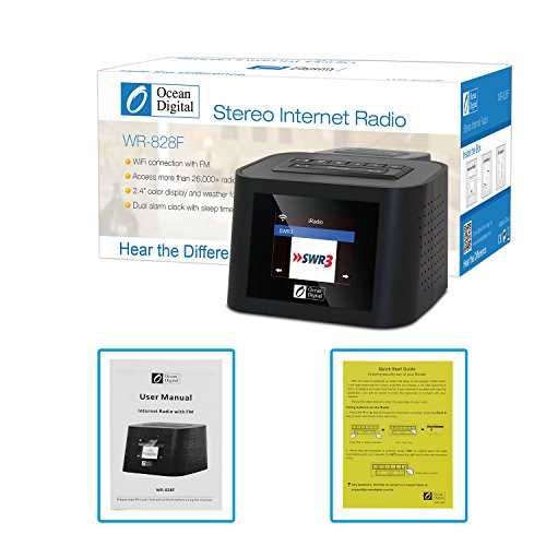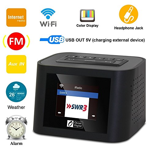 Ocean Digital Internet Radio WR828F Wi-Fi FM Radio Stream Media Music Player Alarm Clock with USB Port for Charging- Black
