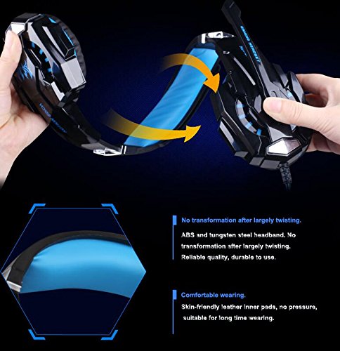 Unique 4-pieces of reinforced padded headband offers levels of height adjustment for perfect fit. Extreme soft,comfortable and ventilate protein ear cushions guarantees hours of gaming comfort.