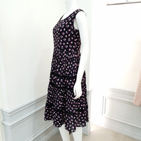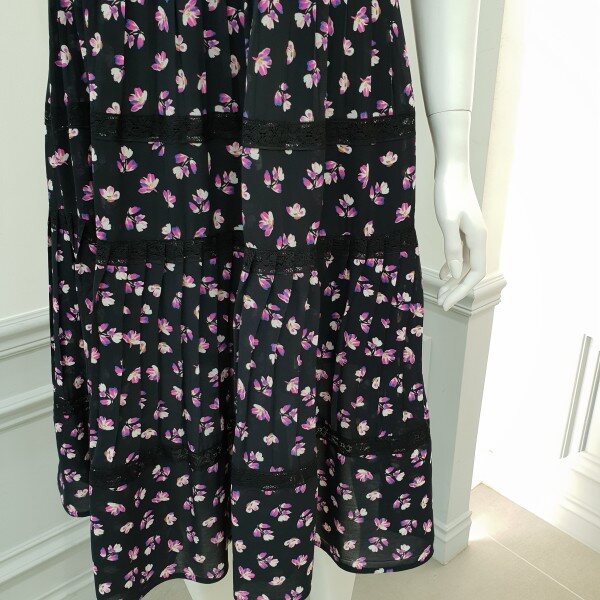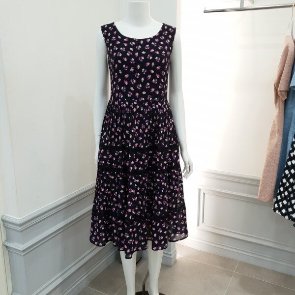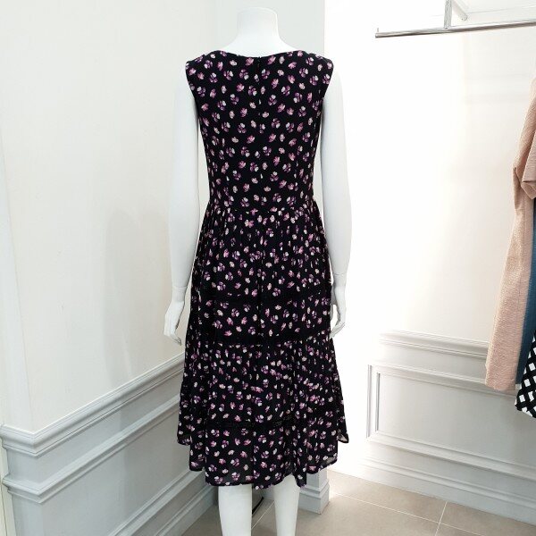 스커트 중간중간 레이스 배색 포인트민소매 쉬폰 원피스♡