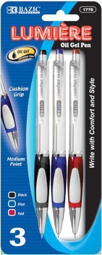 -. Title : BAZIC Lumiere Asst. Color Retractable Oil-Gel Ink Pen w/ Grip (3/Pack) (1778) by Bazic