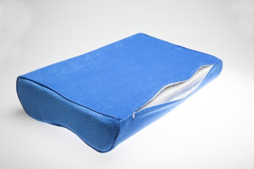 - Feature : Made of highest quality foam material available for a comfortable night sleep. / It is designed to fit perfectly to the head, neck, and shoulder physical curve. / It relieves the pressure on neck and back muscles,ideal for back and side sleepers. / 80%cotton 20% polyester machine washable blue plush velour cover.