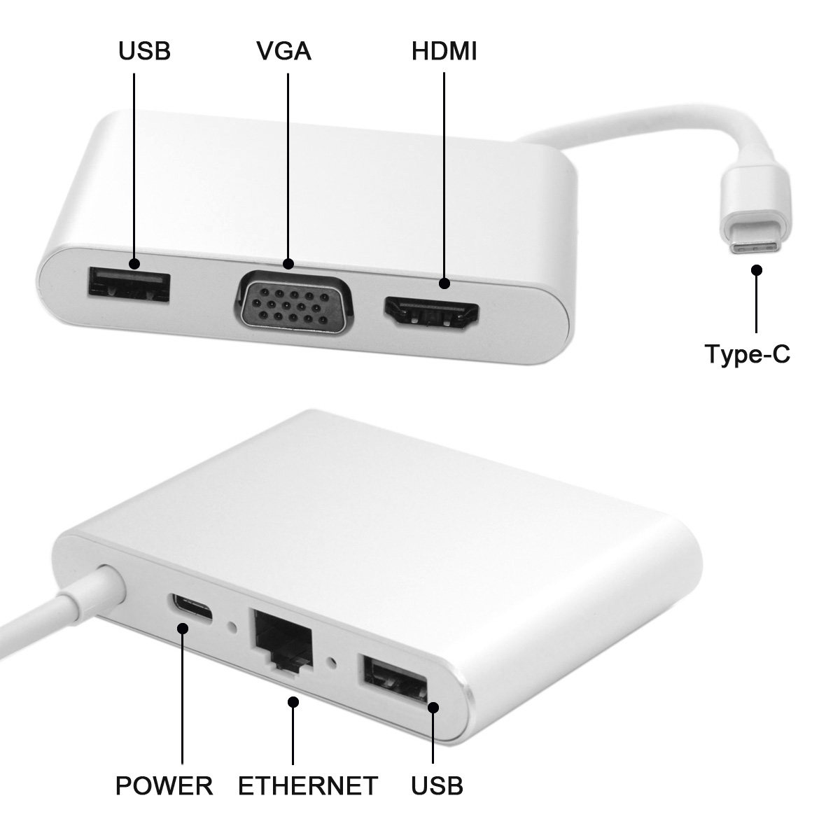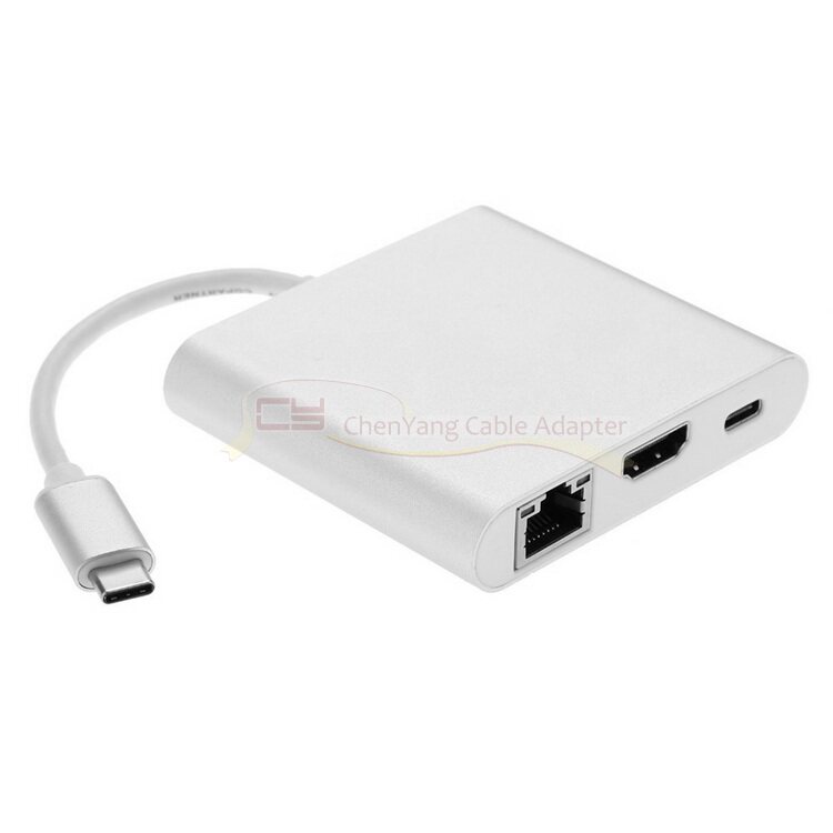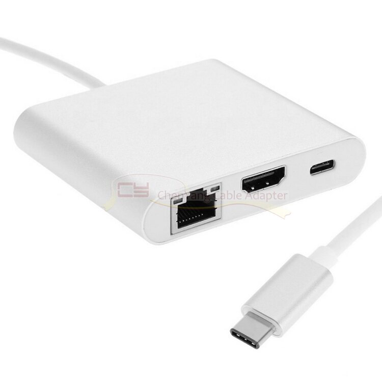 Metal Case New Macbook USB 3.1 USB-C to HDMI OTG + 1000m Ethernet adapter for charging