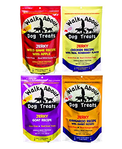 -. Title : Walk About Grain Free Jerky Dog Treats Mixed 7 oz x 4 packs – Wild Game, Chicken, Goat, and Kangaroo Recipe