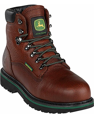 Studio : John Deere Footwear Publisher : John Deere Footwear Binding : Apparel Product Description These JD6383 John Deere Men's Waterproof Safety Boots are one of the most recognizable and trusted brands in America. John Deere is proud to bring you boots that live up to that legacy. Built using the highest quality materials, the latest technology and superior craftmanship, John Deere boots provide the comfort and durability your life demands. John Deere boots are made with the highest quality components and materials, using the finest leathers, insoles and outsoles that are designed to be comfortable and durable in even the toughest work conditions. 6" Dark Brown Waterproof Barnyard Acid Resistant Leather Padded Collar Genuine Cambrelle II Moisture-Wicking Lining Treated with Agion Antimicrobial Waterproof Breathable Membrane Eyelets and Hooks Set with Stainless Steel Washers Removable Air Flow Comfort Orthotic Insert Tempered Steel Shank Goodyear Welt Construction Oil, Slip and Heat Resistant Combine II Rubber Outsole Steel Toe Rated ASTM F2413-05 I75/C75 Electrical Hazard JD6383 John Deere Men's Lace-Up Safety Boots - Dark Brown 0