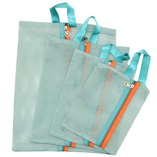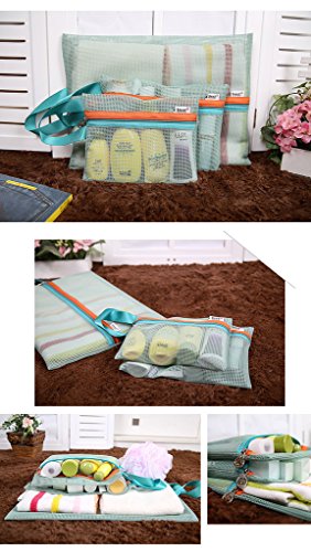 -. Feature : Material: High Quality Nylon Mesh Fabric / These beautiful storage bags each set has four mesh bags, four different sizes of storage bags. / X-small Size: 18 x 22 cm; Small Size: 20 x 26 cm; Medium Size: 25 x 32 cm; Large Size: 30 x 39 cm. / Can be classified to store, sort clothing, toiletries, cosmetics, bathing suit and so on. One of the toughest things to do while packing for a trip is fitting everything you want to bring with you into your lage. / The travel storage bag suitable for use at home, traveling, clothing, towels, toiletries, cosmetics, keys, digital accessories, etc., all can be accommodated in, breathable mesh, when things are very easy to find, one can see the inside stuff! With portable and easier to carry!