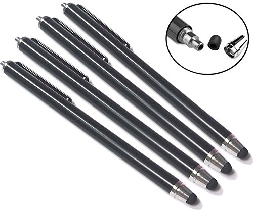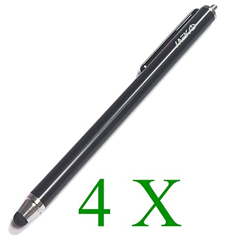 MEKO(TM) 4 Pcs [0.22-inch Rubber Tip Series] 5.5"L Thin-Tip Stylus Bundle With 4 Extra Rubber Tips and 2 Lanyards (Black)