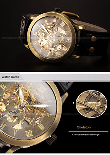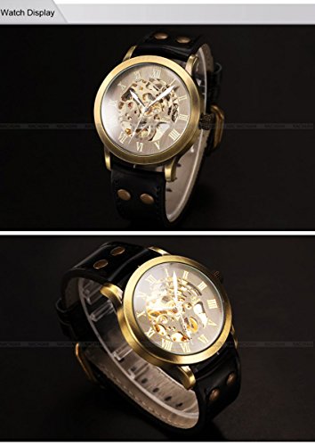 -. Title : AMPM24 ビンテージ ローマン スティーム パンク スケルトン 自動巻き機械式レザーバンドメンズウォッチPMW199