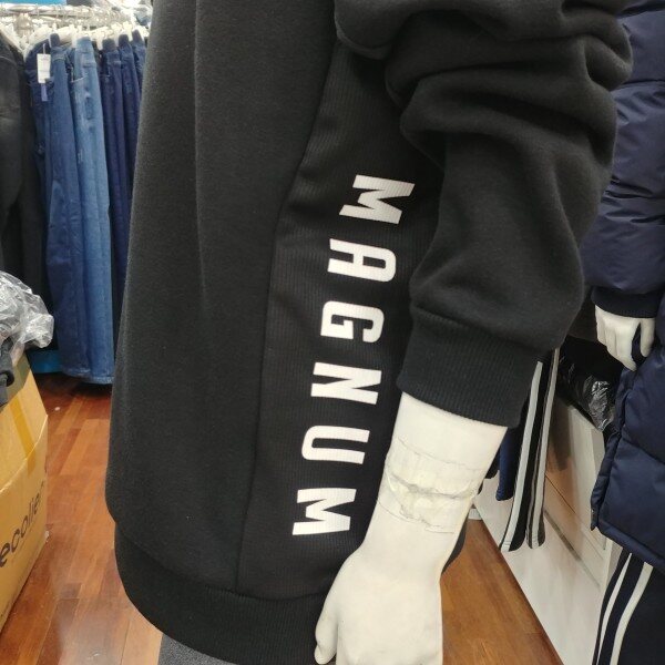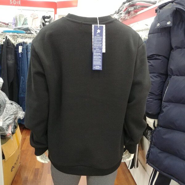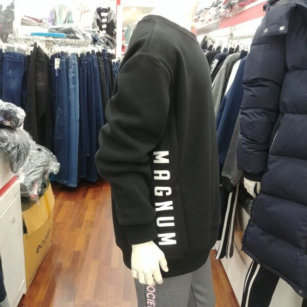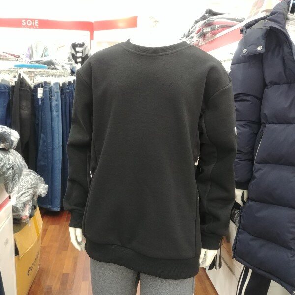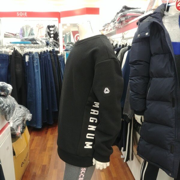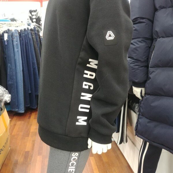밍크털의 블랙 맨투맨 티입니다.양쪽 소매 부분의 로고 포인트와 양쪽 허리 부분의 삼각형 셋트 안의 로고가 돋보이는 티셔츠입니다.멋쟁이 블랙 티셔츠입니다.