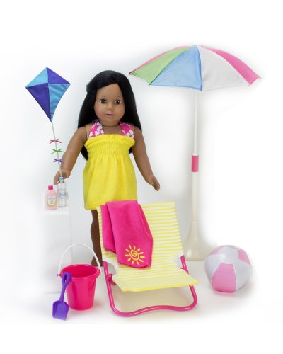 -. Title : 18 Inch Sophia's Doll Beach 10 Pc. Set for 18 Inch Dolls, Beach Set Includes Pretend Play Doll Sun Umbrella, Kite, Towel, Beach Ball, Bucket, Shovel, Sunscreen, Water Bottle & Lounge Chair, Set is Perfect for American Girl Dolls & More! Doll Furniture Beach Set