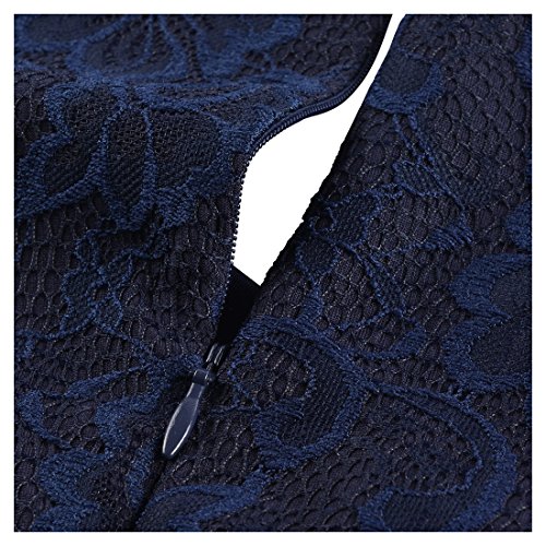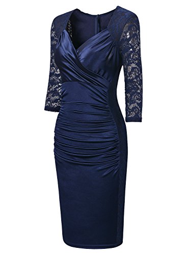Women's Deep-V Neck Ruffles Floral Lace Fitted Retro Evening Pencil Dress