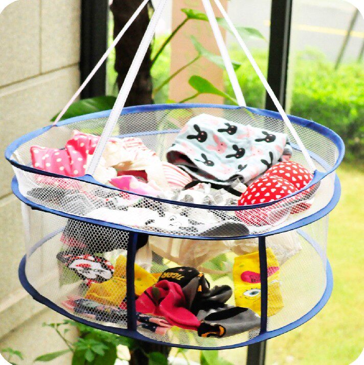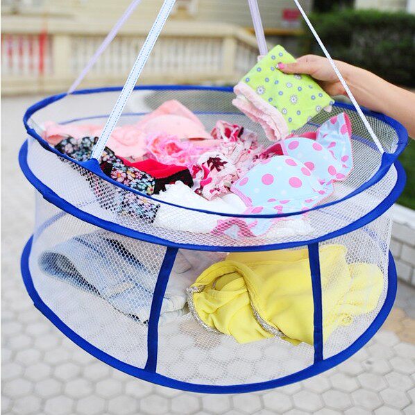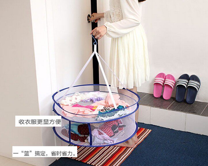 (买1送1)优质折叠封闭双层晾衣篮 毛衣晒衣篮 防尘晾晒篮内衣袜子晾衣网兜