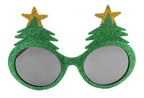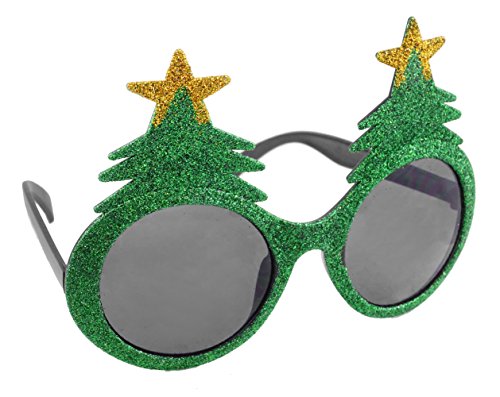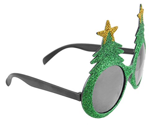 Product Description Get into the holiday spirit with our festive holiday sunglasses! Features a pair of glittery green Christmas tree shaped sunglasses with a yellow star on top - Measures 6"W x 4"H. 0