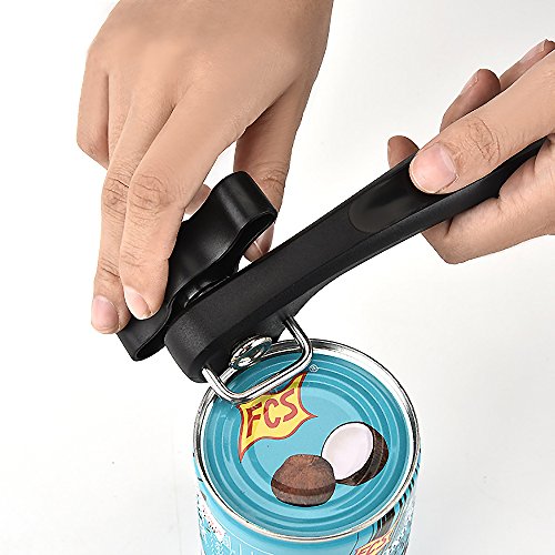 StillCool Can Opener - Safe Cut Smooth Edge Can Opener - Food Grade Stainless Steel with Soft Grips Handle (Black)