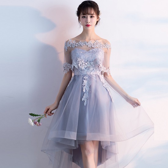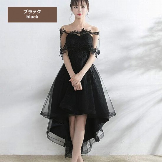 パーティードレス ミモレ丈 ひざ丈 ワンピース フィッシュテール レース オフショル フラワーケープ ベアトップ シースルー お呼ばれ drgz2122