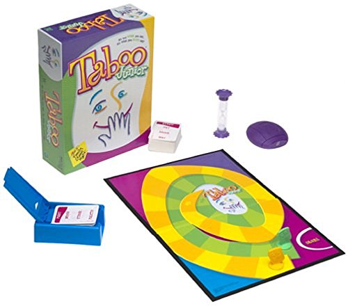 -. Feature : Kids edition of classic game Taboo, words specially selected for kids / Hilarious fast-paced describing game / Includes word cards, squeaker, timer, and progress scoreboard / For four or more players / Recommended age: 8 to 12 years