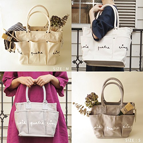 -. Feature : 機能的な仕様のマルシェバッグ。日常づかいにも、ママバッグとしてもおすすめ。外側に5つのポケット。内側にはペンホルダーやフタ付きのポケットがあります。Mサイズは、水筒・ボトルなどのホルダーとなるパーツも付いています。カシメはアンティークゴールド仕様。キャトル・セゾンオリジナルデザインです。 / 39×30×19cm / 綿100% / 日本 / 洗濯により、収縮、印刷文字の色落ち、色褪せすることがあります。
