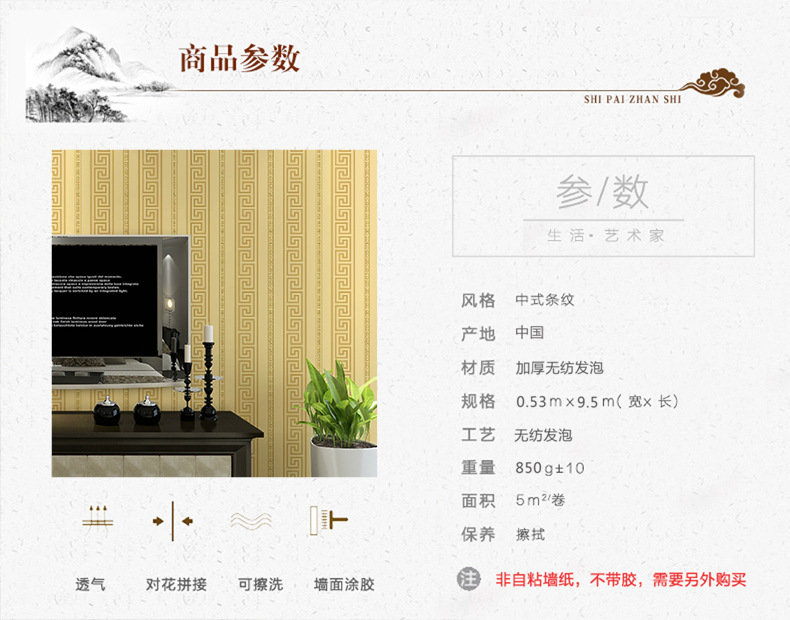 u0026nbsp;u0026nbsp; 本款墙纸为非自粘墙纸,亲们请注意了,贴墙纸需用胶水,本店有最新环保糯米胶出售,详情请点击u0026nbsp;