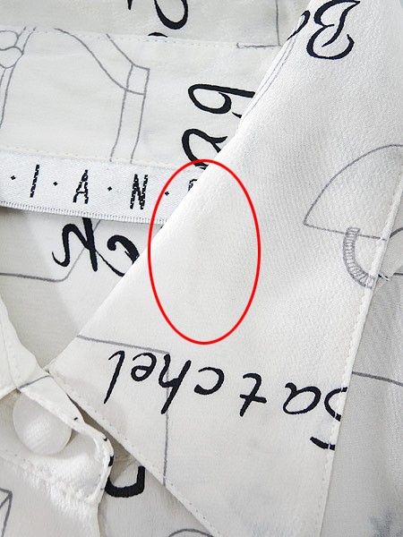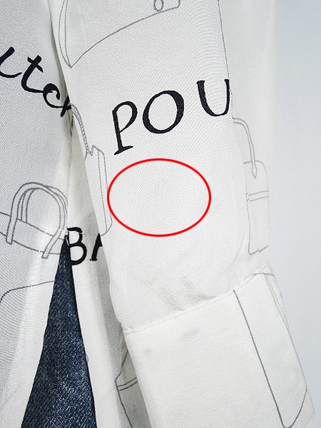 Ladies ブランド- カラー白ベース メール便不可 コンディション★★★ 素材記載なし 表記サイズ記載なし スタッフコメント透け感あり。後ろ、左脇付近に横ホツレ破れ、薄いヨゴレあり。両袖口上付近に薄汚れあり。前、左下付近に薄いヨゴレあり。首周り、襟にヨゴレあり。 実寸サイズ 着丈 70 cm 身幅 53 cm 肩幅 46 cm 袖丈 56 cm ※ウエスト・ヒップ以外は平置き採寸