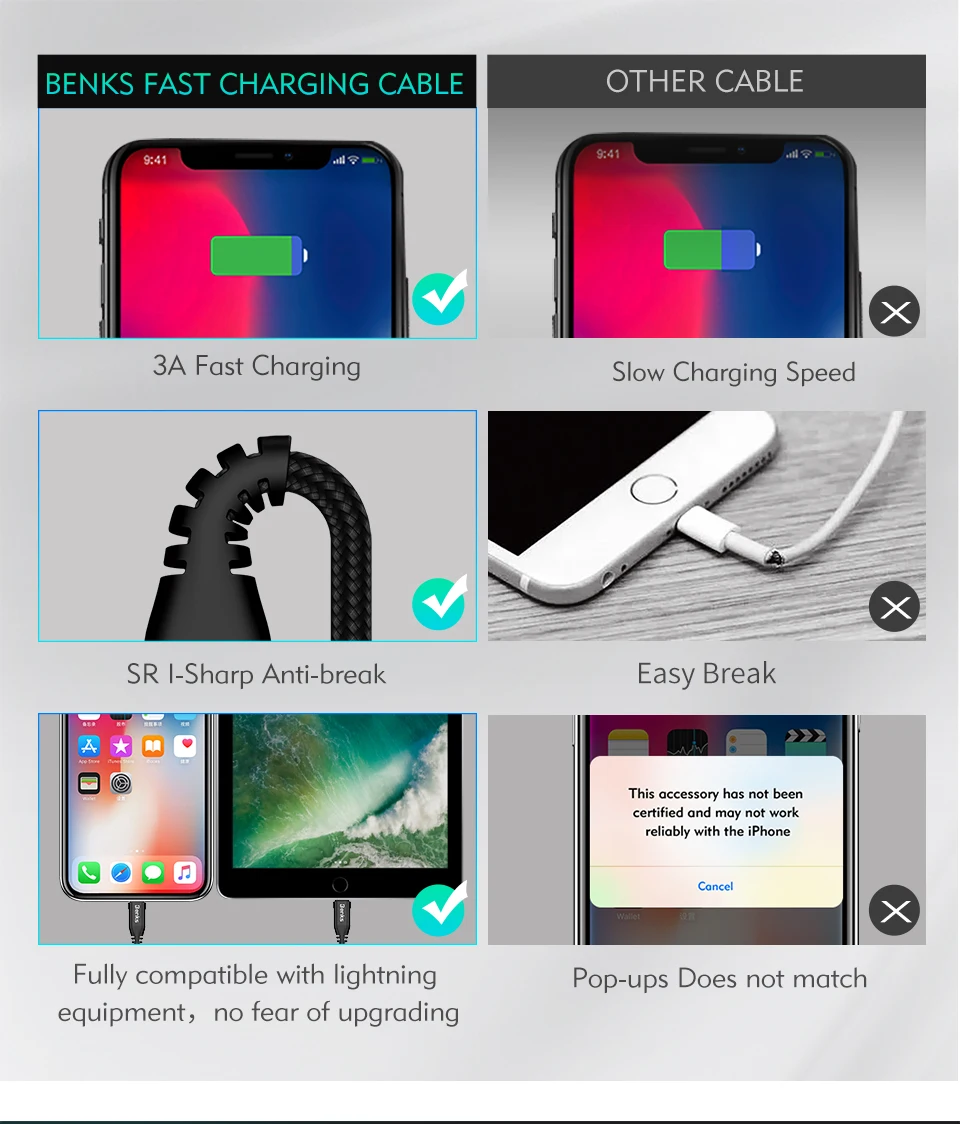 Feature -2:Cable for iphone xs max, Data cable for iphone X