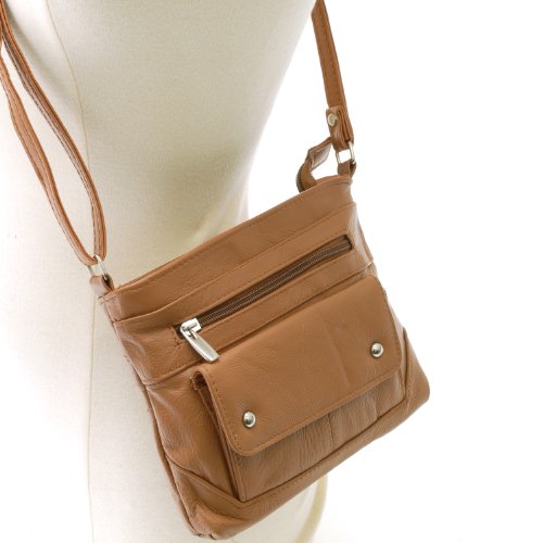 SBR Designs Women's Leather Cross Body Organizer Bag Coffee