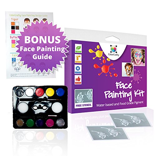 - Title : Face Painting Kit From Colorcrafty Offers Easily Washable, FDA Compliant Water Based Face Paints with Eight Colors and 2 Glitter Powders. Comes with A FREE GUIDE & STENCIL to Create Some Fantastic Designs for Parties and Any Occasion.