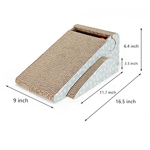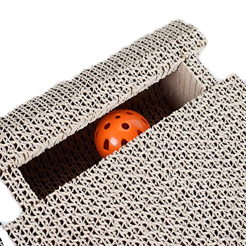 Features: Comfortable natural incline scratcher for your cat is more ergonomic than other cat scratching products such as a cat scratching post, cat tree, or cat tower. There is a bell in the cat scratching post.It can make the cat play for a long time. This prodouct entices cats with catnip, promote them to scratch, attracts them to play inside bell-balls. 0
