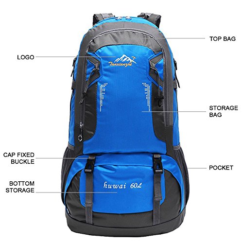 -. Feature : 【MULTIFUNCTION 60L HIKING BACKPACK】With a capacity of 60 liters(3,600 cubic inches); Plenty of pockets can carry your stuffs easily. Prefect for hiking, traveling, camping,climbing , shopping and school,suit for both men & women and great gift for everyone. / 【A RAIN COVER INCLUDED】The travel backpack with a orange rain cover;light, comfortable, and adjustable chest and waist belts; ergonomic padded shoulder straps and waist belt can relieve burdened on the shoulder,quickly relieve pressure on the spine / 【DURABLE & COMFORTABLE】Made of lightweight durable materials.Padded adjustable shoulder straps and mesh ventilation promise an enjoyable carry. / 【60L WATER-RESISTANT BACKPACK】Rip-stop polyester to prevent the water from sipping into the bag; If the heavy rain comes, then rain cover can works. / 【NO RISK PURCHASING】3 years 100% satisfaction warranty guaranteed & easy-to-reach customer service.
