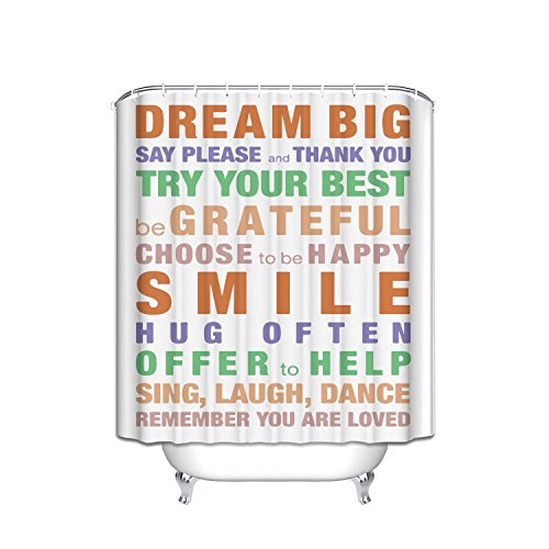 EZON-CH Customize Waterproof Modern Art Orange Color Famous Words Dream Is Big Print Polyester Fabric Bathroom Shower Curtain 60x72IN Style 15