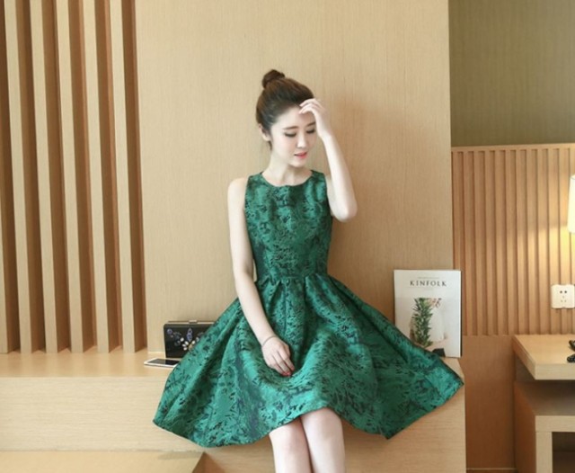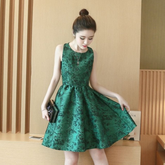 花柄刺繍がエレガントでフェミニンなパーティードレス☆