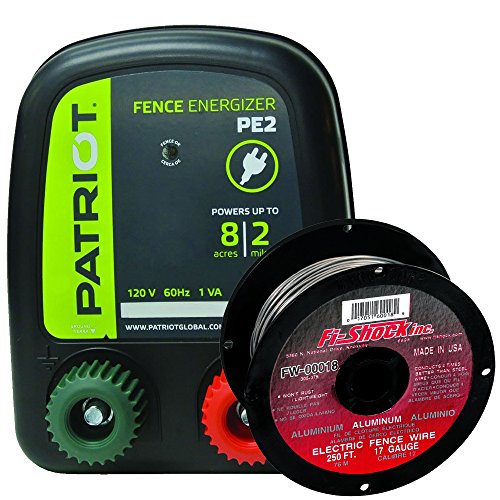 Patriot PE2 Electric Fence Energizer Plus Fi-Shock 250-Feet 17 Gauge Spool Aluminum Wire for Containing Pets and Keeping Out Small Nuisance Animals