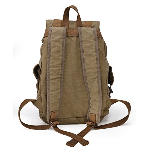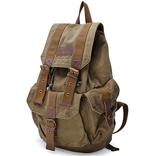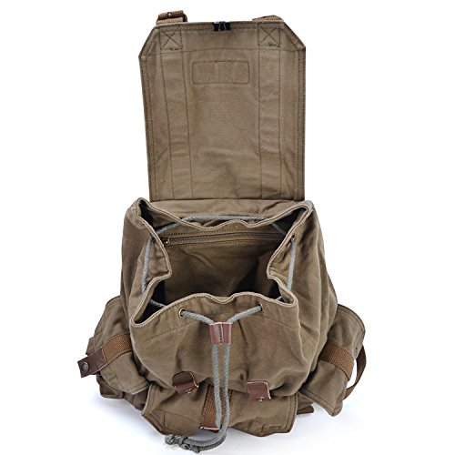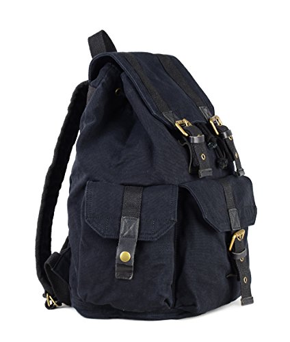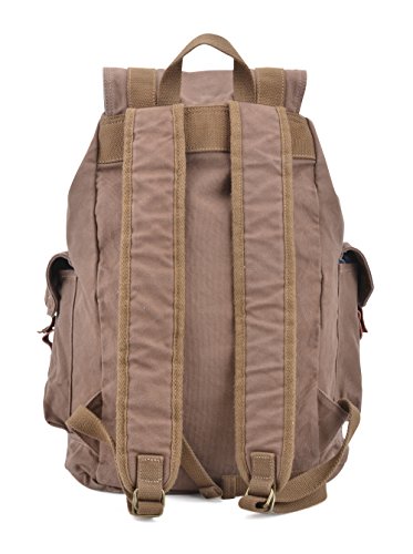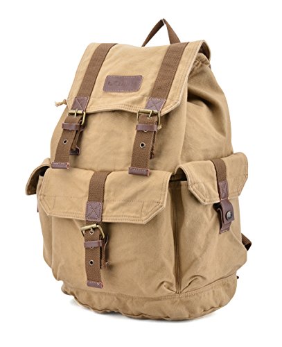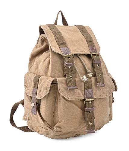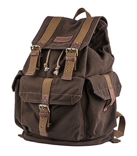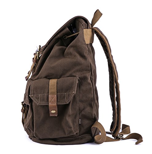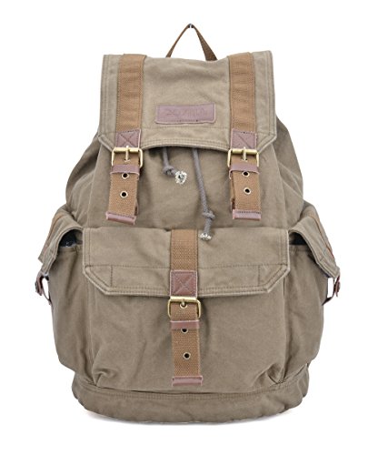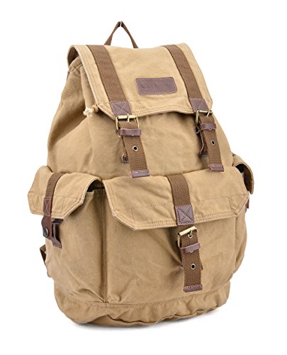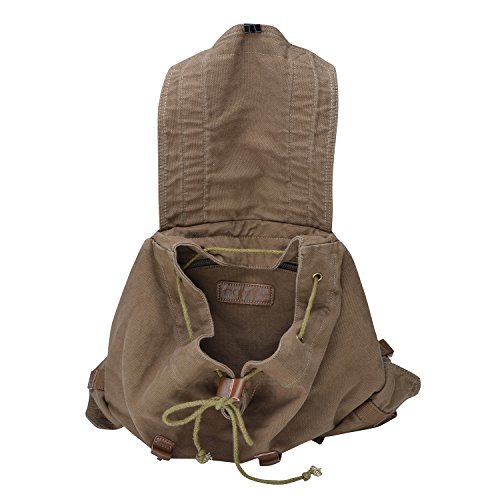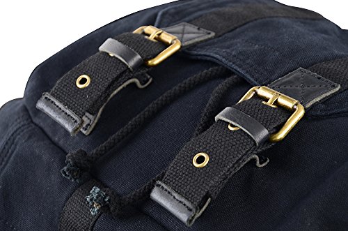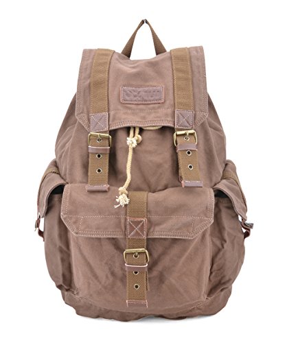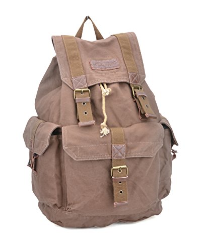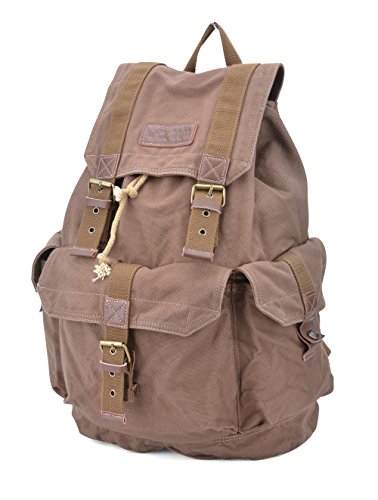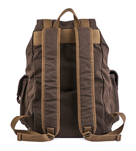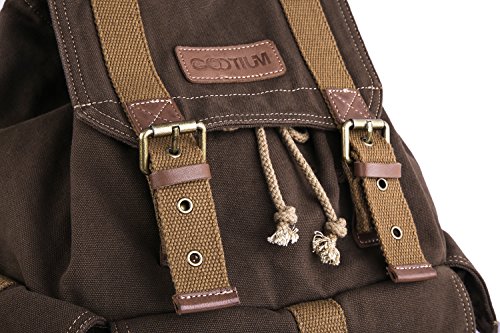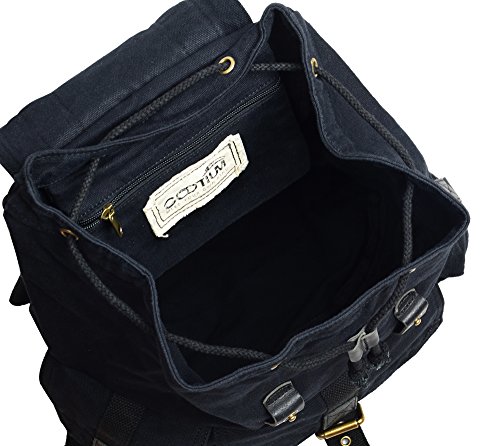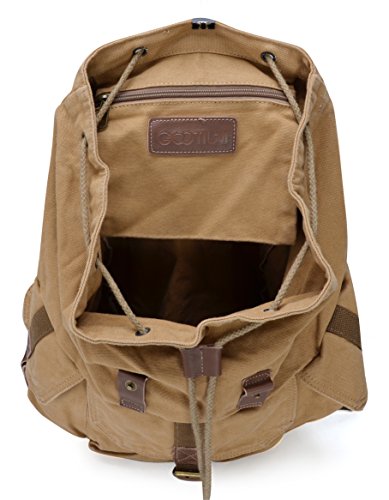 The Gootium Canvas Backpack (21101) can be easily worn by any busy lady or active gentleman who is on the go. This backpack can securely carry a seventeen inch notebook computer as well as a seven inch tablet computer and smart phone. Several pouches will also accommodate numerous gadgets and accessories. The backpack can also serve a dual purpose as a book bag for students of all ages on any campus from high school to college. The rear exterior has a large pouch that is covered by the main flap when it is folded over. Heavy, all cotton webbing adorns the backpack as trim. Fancy buckles with built in snaps hold the flaps closed. This backpack has THREE total exterior chambers. The cotton draw string can be tied tightly for added peace of mind. Padded, adjustable shoulder straps will enable a comfortable fit for any man or woman of any stature. Full grain leather is used on the trim of this backpack. A top mounted handle will enable the backpack to be carried with a single hand or be hung up for storage. Smooth, clean and even stitching throughout