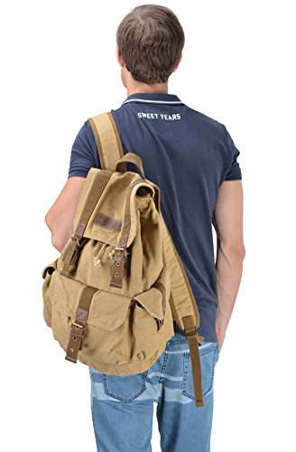 100% Brand New Material:100%Cotton,High Density Thick Garment Washed Canvas Item Weight:2.2 pounds 33 Liter Capacity Big enough to Accommodate a 17 inch laptop, a 7 inch tablet in the front pocket and much more. Adjustable padded shoulder straps for carrying comfort Interior Zipped Pocket Total Three Outside Pocket. Vintage/Retro Design Economize Your Carrying Effort
