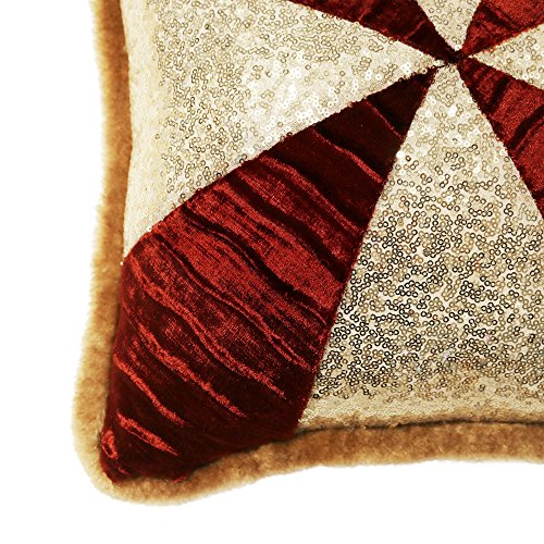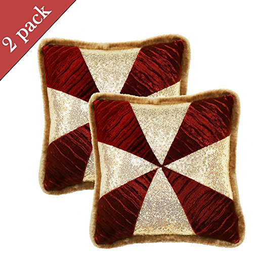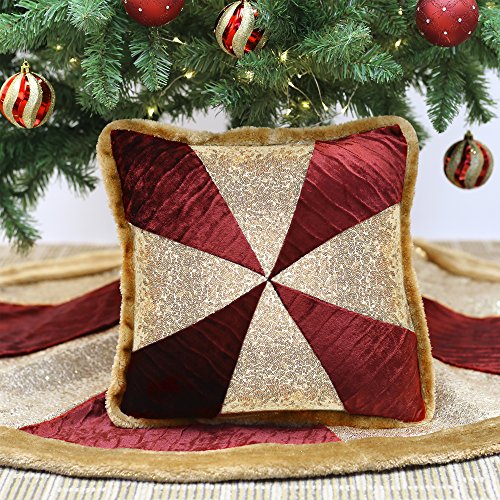 Valery Madelyn 16x16 Inch Pack of 2 Luxury Red and Gold Sequin Velvet Christmas Pillow Covers with Fur Trim Border,Themed with Tree Skirt(Not Included)
