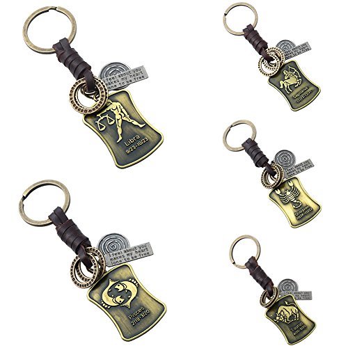 Type: Key Chain Gender: Unisex Material: Alloy Faux Leather Style: Retro Occasion: Gift, Souvenir, Daily Life, School, etc Features: Constellation Pendant, Bag Hanging Decor