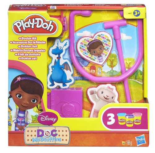 -. Binding : Toy -. Brand : Hasbro -. EAN : 6386440032257 -. Feature : Create your favourite Doc McStuffins character with this fun Doctor Kit / You can make Play-Doh bandages with the stethoscope mold / 3 colors of Play-Doh modeling compound / Make a Play-Doh medical hammer / Stamp, squeeze, shape and press -. IsAdultProduct : 0 -. Label : Hasbro -. Manufacturer : Hasbro -. Model : A6077 -. MPN : A6077 -. PackageQuantity : 1 -. PartNumber : A6077 -. ProductGroup : Toy -. ProductTypeName : TOYS_AND_GAMES -. Publisher : Hasbro -. Studio : Hasbro -. Title : Hasbro Play-Doh Disney Doc Mcstuffin Doctor Kit Playset