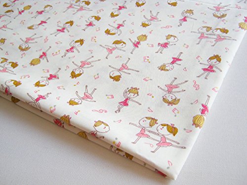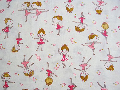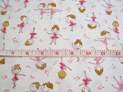 Ballerinas Fabric Lily Ballet Fabric White 36 by 36-Inch Wide (1 Yard) (CT409)