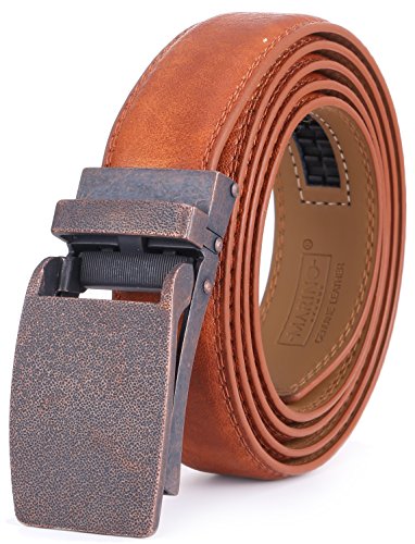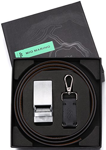 NO MORE HOLES - Marino fashion ratchet belt provides 38 unique adjustments for an extremely comfortable fit. Marino leather belts for men features an easy removable buckle that allows you to cut the belt to your ideal size to give a primmer appearance!