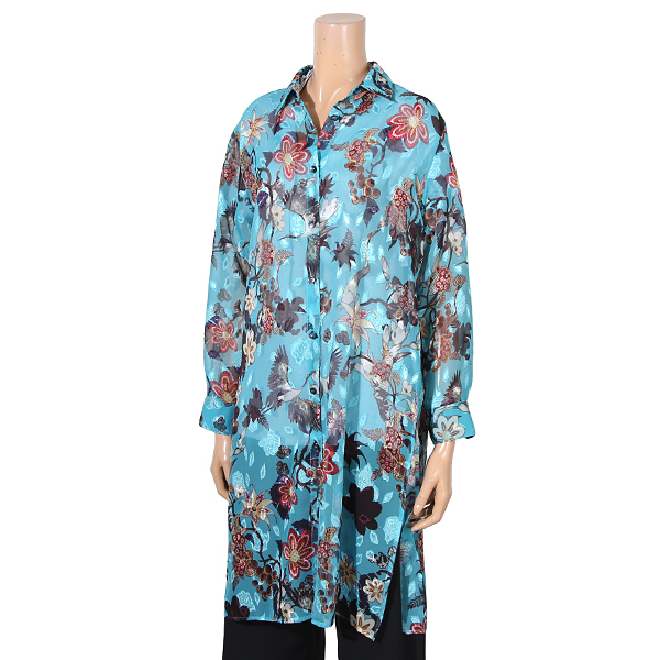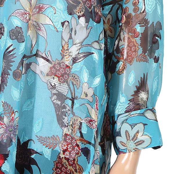 꽃무늬와 새무늬가 멋있게 나염이 된 안이 비취는 아주 시원하고