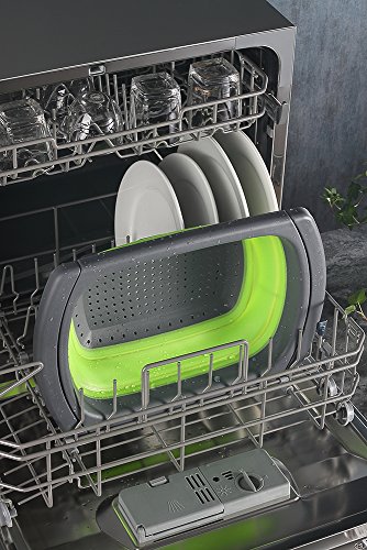 Sturdy design fits almost all sink shapes size,wash or rinse fruits,vegetables,berries,herds,meats or other foods Great Colander for camping and easy storage in the kitchen Drainage smoothly ,take up 1/3 of the space as a regular colander strainer does.