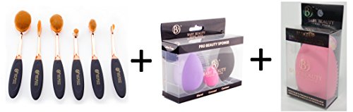 Baby Beauty Forever Young 6pc Rose Gold Oval Makeup Brush Set & Peach Makeup Brush Cleaner & 3pc Blender Value Pack
