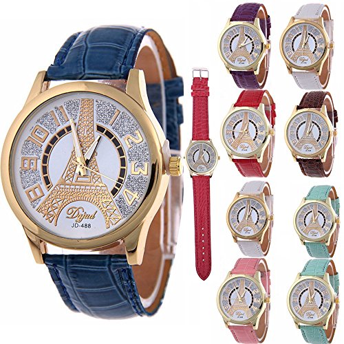 -. Feature : Package Included:10 X Leather watch / Leather strap band design, Eiffel Tower pattern / Quartz Movement, simple and decent style for women and girls. / Good choice as womens watches or gifts.
