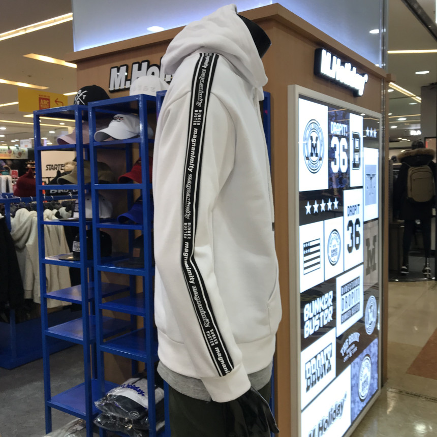 엠할리데이 소매 레터링 오버핏 후드 티셔츠 입니다.