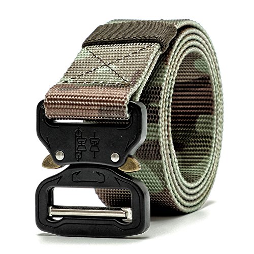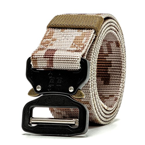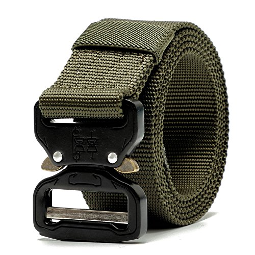 Product Description Metal Buckle Size: 4.9cm * 5.9cm * 0.8cm Length:120cm(47.24 inches) Width:3.8cm(1.5 inches) Material: Nylon Buckle: Thicken Metal Buckle/ Knock Off Color: Black Tan Green Package: 1 x Tactical Belt