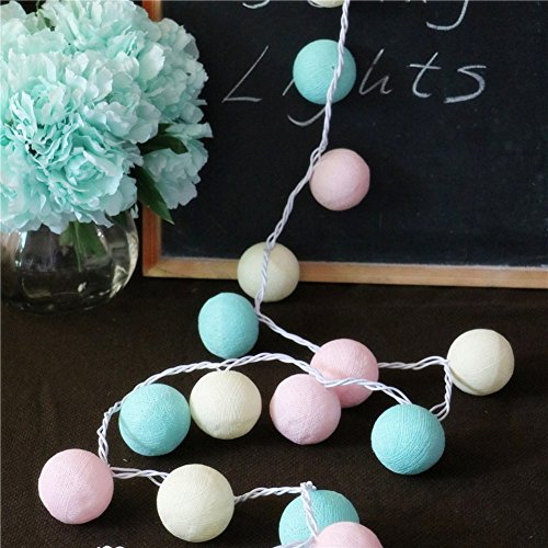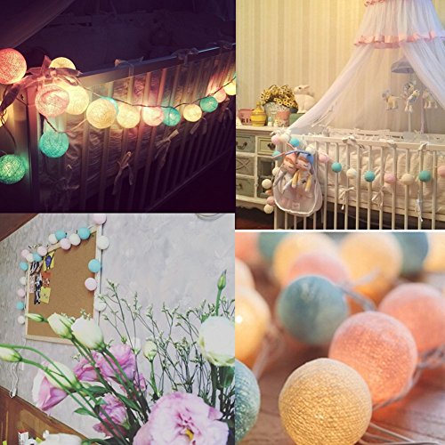 Foerteng A Set of 20 Lights Manual Handicraft Cotton Ball String Lights 2M/78.74" Romantic Battery Operated LED Light