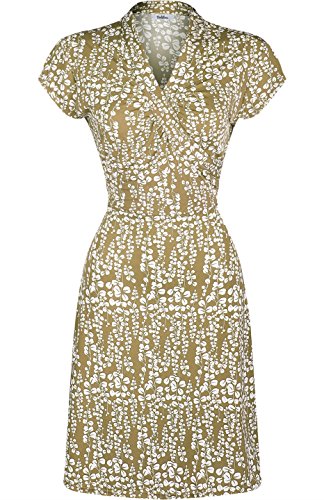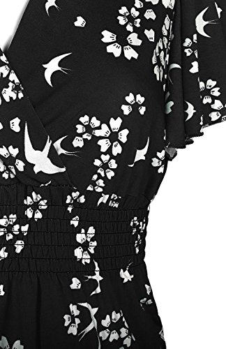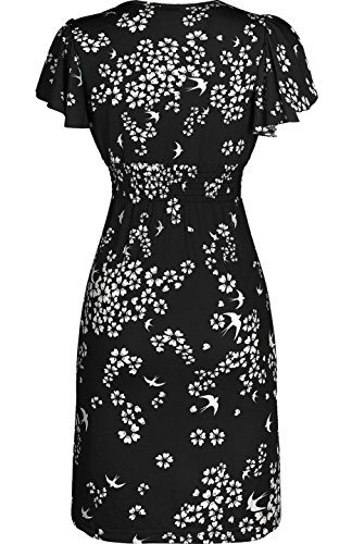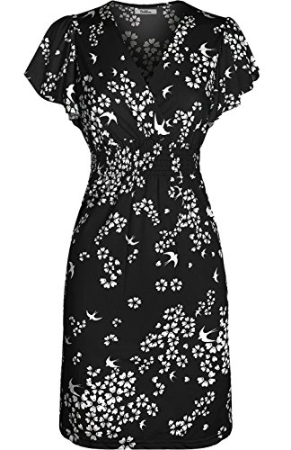FEATURES: This dress features short sleeves, v-neck line, smocked waist, knee length, and a unique printed design.