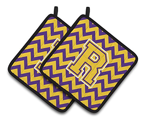 Caroline's Treasures Letter R Chevron Purple & Gold Pair of Pot Holders CJ1041-RPTHD, 7.5HX7.5W, Multicolor