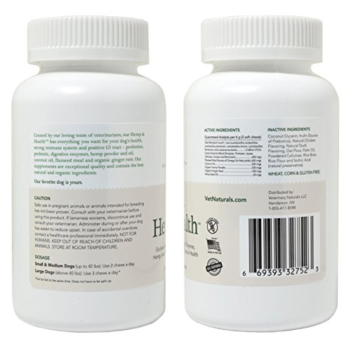 -. Title : Veterinary Naturals 'h.e.m.p & Health' Soft Chew Probiotic for Dogs, High Fiber, Eliminates Diarrhea & Gas, Omega Fatty Acid and Skin & Coat Supplement