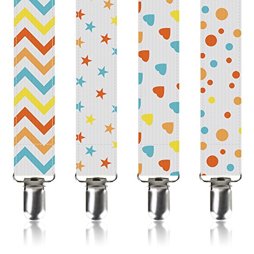 -. Title : Comfortable & Washable Cloth Universal Baby Pacifier / Teething Ring Clips Set ( 4 Packs Different Lovely Pattern ) for Boys &Girls (Cheerful)