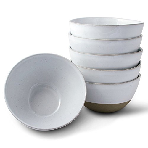 Studio : Trois Voyageurs Publisher : Trois Voyageurs Product Description These sturdy and lightweight ceramic bowls will provide a striking and one-of-a-kind accent to the dinnerware in any home or event. They will definitely be a conversation piece! The two-tone glaze is a natural flecked white over a speckled beige base. The bowls have two textures: the upper white portion has a high gloss finish while the lower portion has a slightly textured matte "engobe" finish. You'll love the tactile and visual contrast.